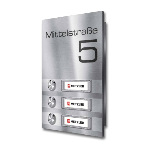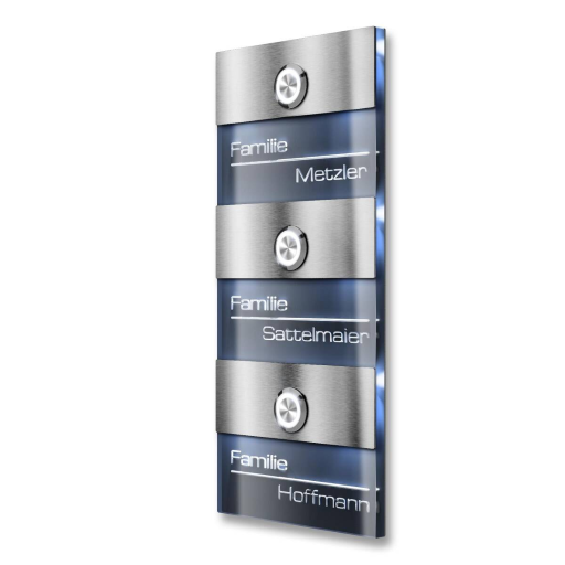 Metzler Türklingel Sena M3 Edelstahl mit 3D-Namensgravur + LED-Taster optional