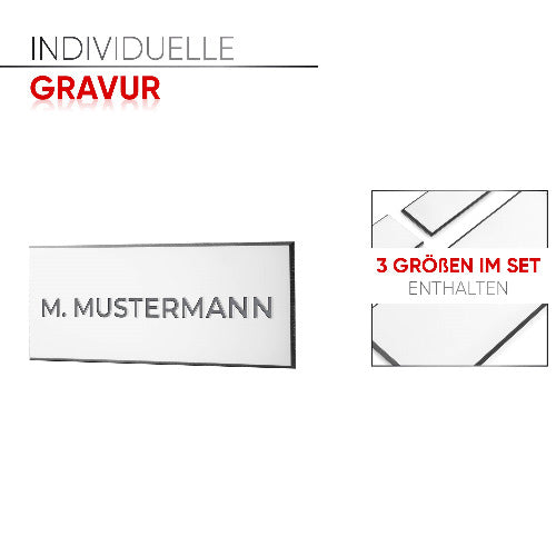 Klingelschild / Türschild / Briefkastenschild Massives Edelstahl selbstklebend mit individueller Gravur