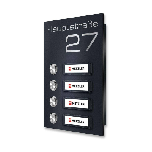 Metzler Funkklingel Mehrfamilienhaus Tara M4 mit austauschbarem Namensschild und Gravur