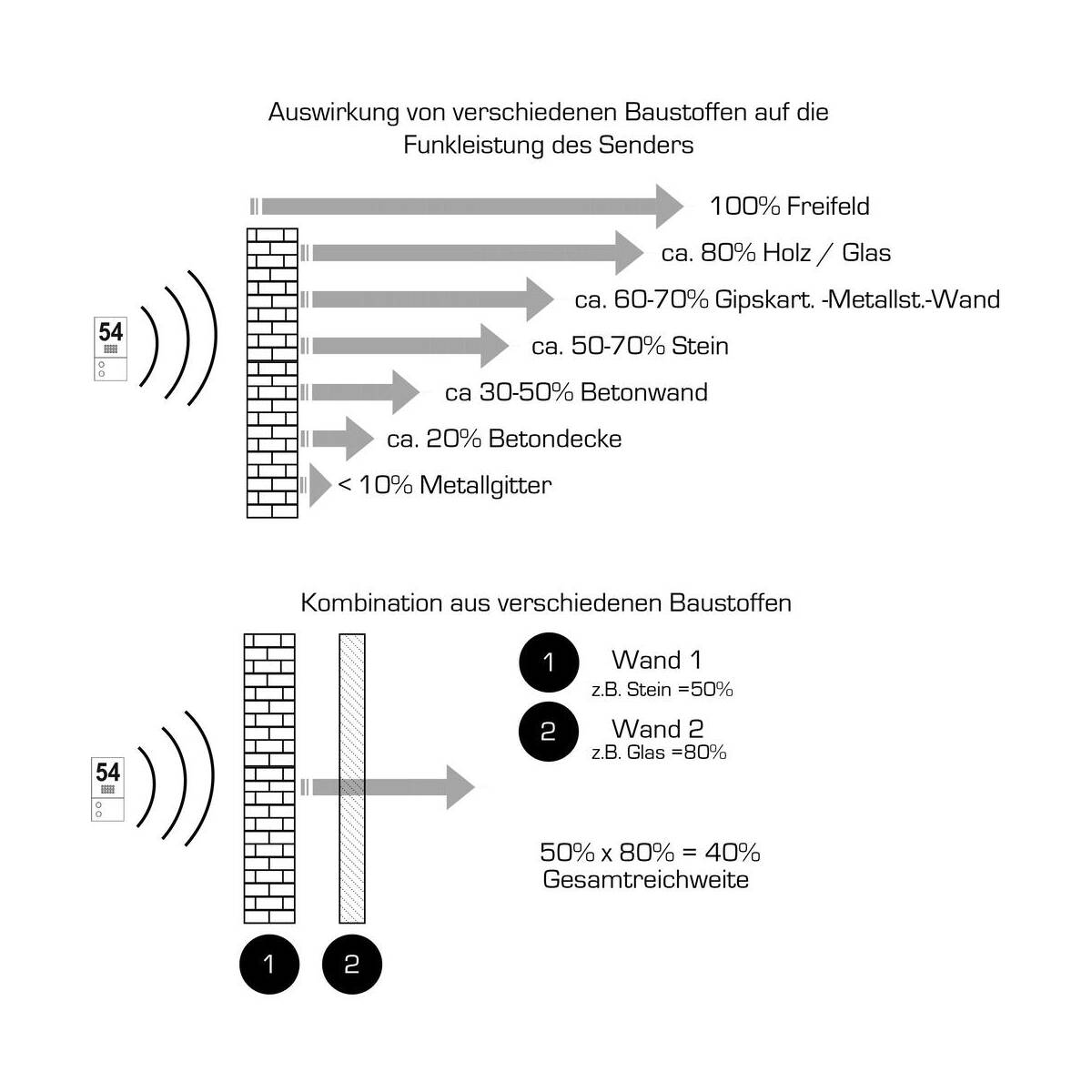 Reichweite: bis zu 150 Meter (Freifeld)
