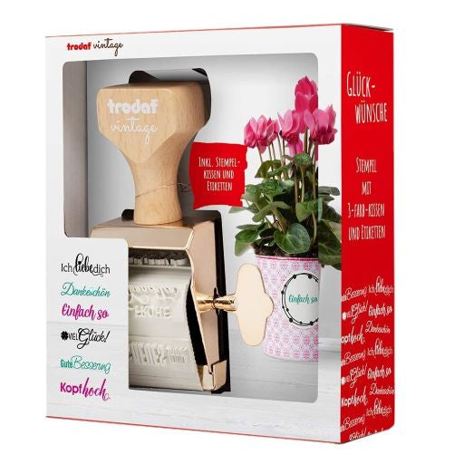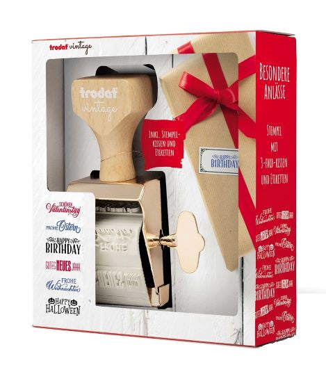 Sie brauchen weitere Aufkleber oder neue Stempelkissen? Kein Problem! Die Trodat Vintage Aufkleber und Stempelkissen gibt es hier: