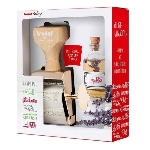 Selbstgemachtes: Handmade, Für dich, Glück im Glas, Frisch aus der Küche, Aus meinem Garten, Mit Liebe gemacht in der Abdruckgröße 4,3 x 1,5 cm.
